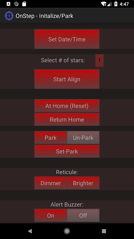 OnStep là một bộ điều khiển Goto được điều khiển bằng máy tính DIY cho các kính viễn vọng. Ứng dụng này kiểm soát hầu hết các chức năng thông qua Bluetooth hoặc Wifi từ điện thoại di động Android hoặc máy tính bảng của bạn.