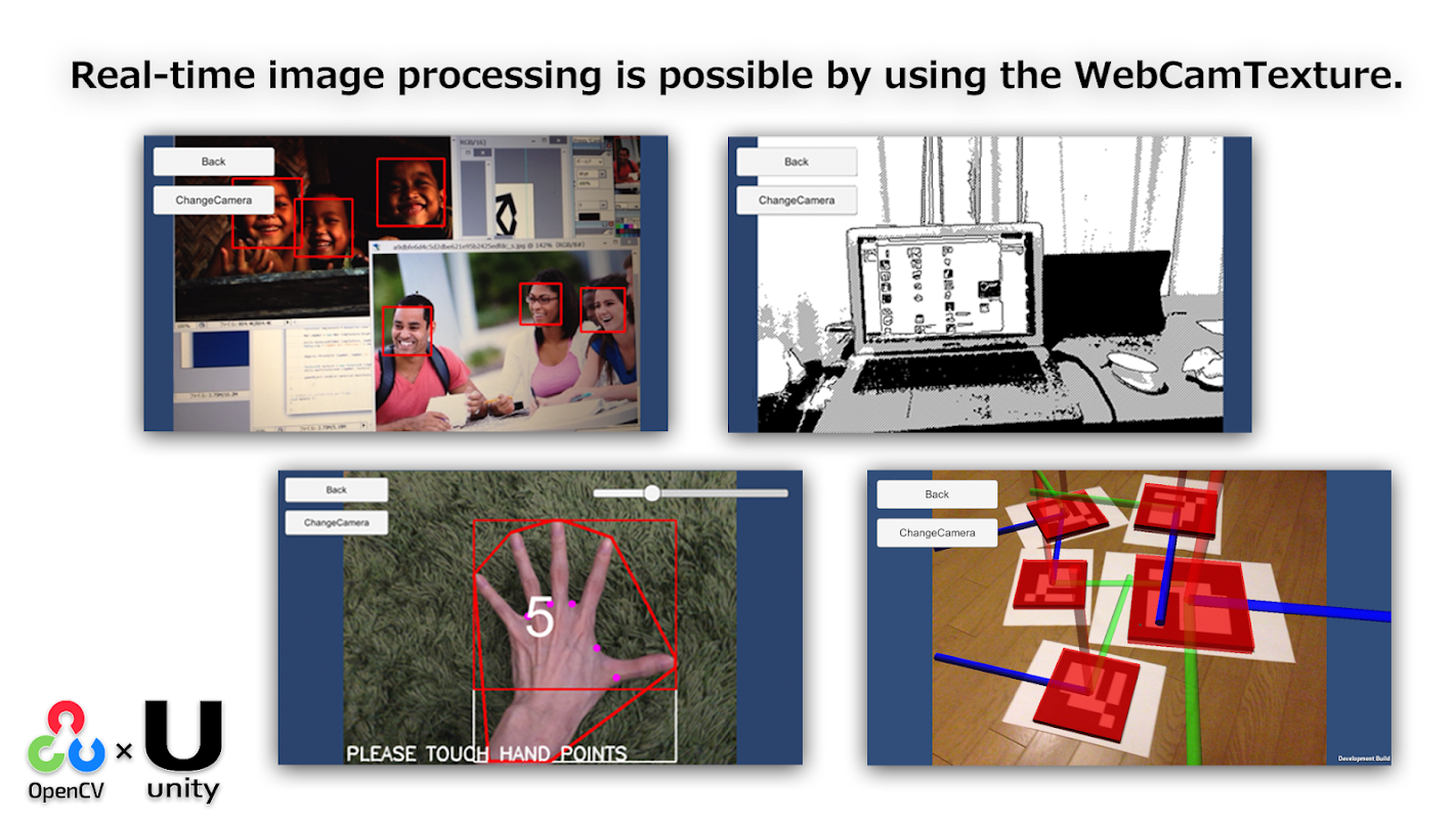 Ứng dụng này là một ứng dụng demo của OpenCV cho Unity (Unity Plugin).