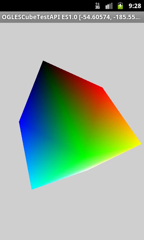 OGLESCubeTestAPI is a simple extension of the TouchRotateActivity example available on the developer Android pages. The app allows the user to swipe the screen to rotate a 3D cube.