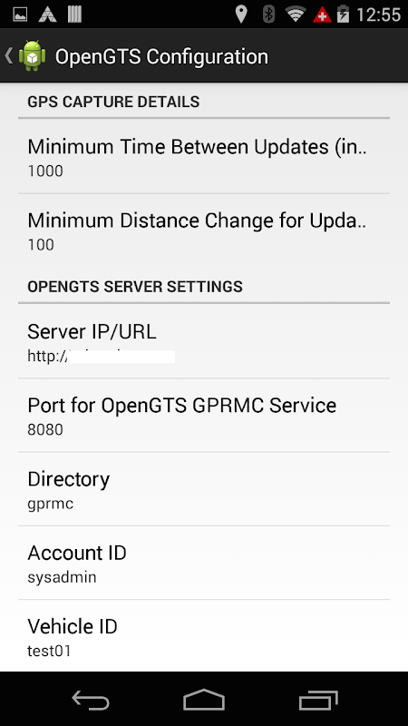 3) The server, account, vehicle id, refresh interval etc. can be configured as per your needs