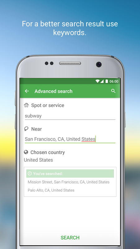 - Søg i nærheden af dig eller i nærheden af en bestemt placering