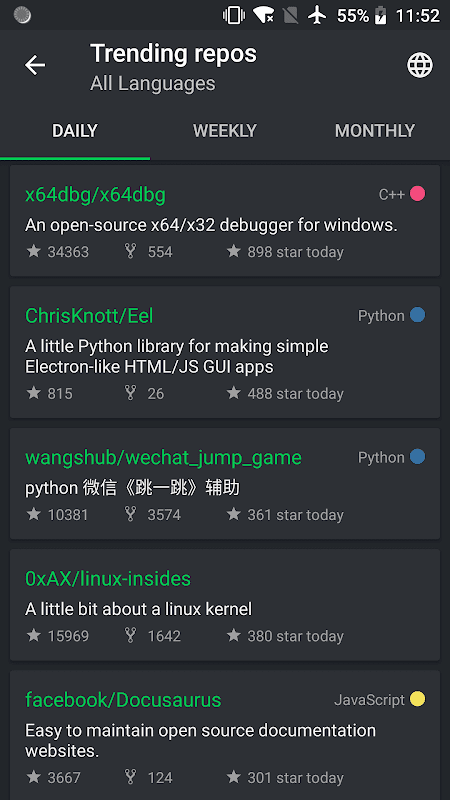 OpenHub is an open source GitHub client, we will open and free for all time, you can view source code at: https://github.com/ThirtyDegreesRay/OpenHub.
