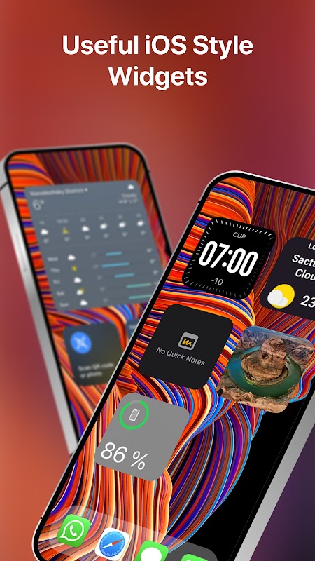 • Các tiện ích lấy cảm hứng từ iOS, bao gồm đồng hồ và hiển thị thời tiết