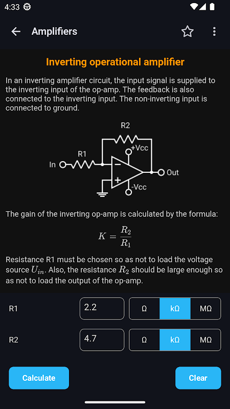 Sử dụng nó như một tài liệu tham khảo thực tế khi phát triển dự án, xây dựng nguyên mẫu hoặc nghiên cứu cấu hình mạch khuếch đại. Ứng dụng cũng bao gồm dữ liệu kỹ thuật về các dòng op-amp và comparator phổ biến — biến nó thành một hướng dẫn hữu ích cho cả thiết kế và lựa chọn.