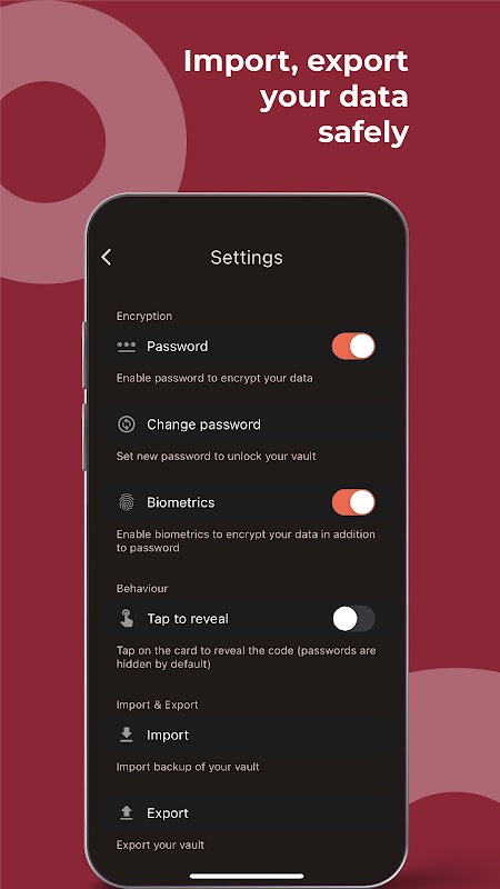 Mở khóa kho tiền của bạn bằng mật khẩu chính và truy cập nhanh thông qua sinh trắc học trên điện thoại thông minh.