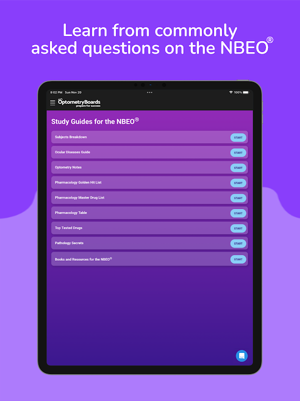 NBEO® là nhãn hiệu đã đăng ký liên bang thuộc sở hữu của The National Board of Examiner in Optometry, Inc. ("Hội đồng"). Ứng dụng này không được Hội đồng quản trị liên kết, tài trợ hoặc xác nhận.