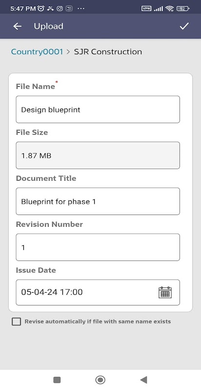 * Đồng bộ hóa các thay đổi được lưu cục bộ với máy chủ Unifier, sau khi có kết nối mạng.