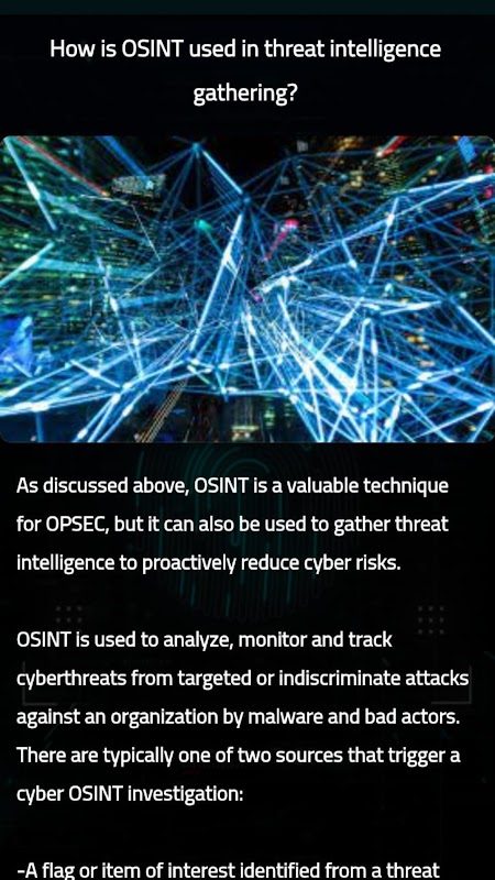 Ngoài ra, ứng dụng của chúng tôi cung cấp thông tin về các xu hướng và cải tiến mới nhất trong OSINT, bao gồm việc sử dụng mạng xã hội và các nguồn trực tuyến khác để thu thập và phân tích thông tin. Bạn cũng có thể tìm hiểu về các cân nhắc pháp lý và đạo đức xung quanh các cuộc điều tra OSINT và cách bảo vệ bản thân và khách hàng của mình khỏi những rủi ro tiềm ẩn.