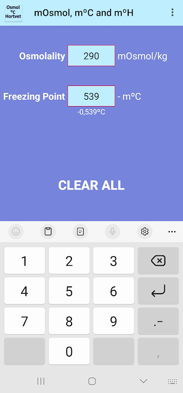 Ứng dụng này sẽ hiển thị cho bạn 3 giá trị; thẩm thấu, điểm đóng băng và Hortvet.