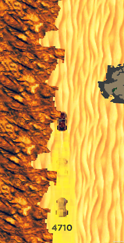 It's a top down 2D car chase in the middle of the desert. Kinda like that movie.