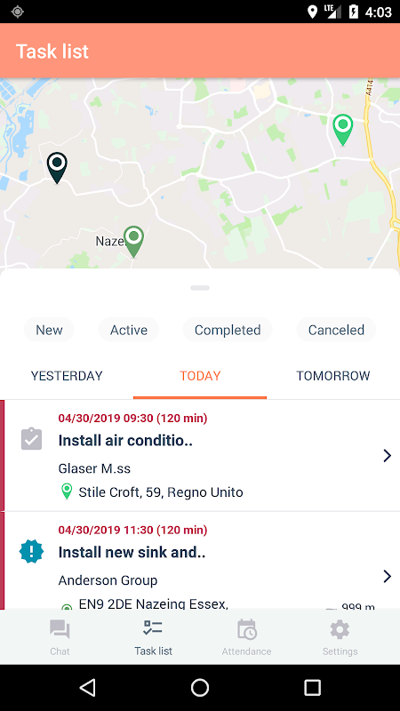 Field Technicians, Drivers, Sales Rep are always connected with the Coordinator and can exchange messages and documents in real time. Mobile Workers have full visibility of all assigned tasks, job or delivery address and activity deadlines. OverMover helps to keep track of activity status and worked time very easily.
