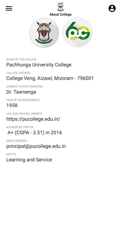 Ứng dụng Cao đẳng Đại học Pachhunga dành cho Sinh viên và Phụ huynh của Cao đẳng Đại học Pachhunga, nơi họ có thể kiểm tra và xem thành tích giáo dục của chính mình.