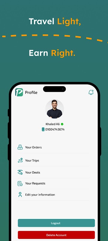 Sau khi trận đấu được thực hiện, một thỏa thuận sẽ được tạo ra giữa cả hai bên. Người gửi hàng thanh toán số tiền đã thỏa thuận và khách du lịch sẽ giao hàng. Nó đơn giản, an toàn và hiệu quả. Hãy tải xuống Packpal ngay hôm nay và biến chuyến đi của bạn thành cơ hội kiếm tiền!"