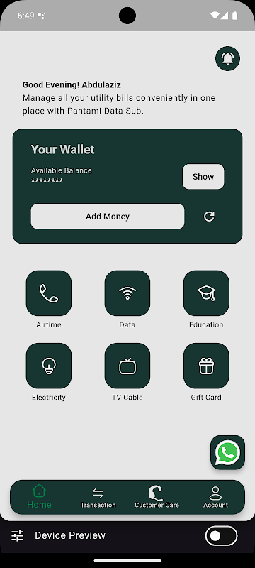 Chào mừng bạn đến với Abba Pantami Data LTD, giải pháp tất cả trong một để quản lý tiện ích dễ dàng. Mua thời gian phát sóng, dữ liệu và thanh toán phí đăng ký cáp một cách nhanh chóng và an toàn chỉ bằng một vài thao tác. Tận hưởng quyền truy cập 24/7 vào tất cả các dịch vụ thiết yếu của bạn và nhận các đề xuất được cá nhân hóa để đơn giản hóa trải nghiệm của bạn. Bộ phận hỗ trợ khách hàng tận tình của chúng tôi luôn sẵn sàng hỗ trợ bạn. Trải nghiệm sự tiện lợi và tin cậy với Pantami Data Sub