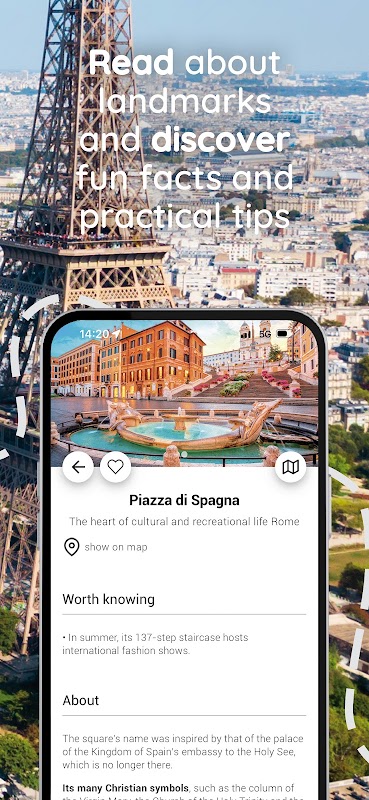 • Mô tả và thông tin thú vị – Tìm hiểu về các địa danh chính, khám phá những thông tin hấp dẫn và tìm mẹo thực tế.