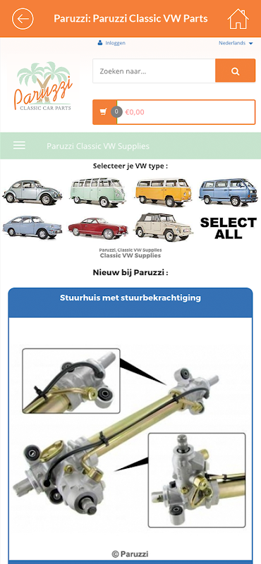 Paruzzi bán phụ tùng cho tất cả VW aircooled: Beetle, Karmann Ghia, Loại 3, Loại 181 / Thing, xe tải màn hình chia nhỏ, xe tải cửa sổ vịnh và xe tải T25.