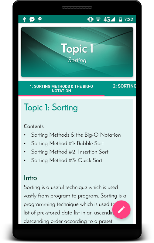 Ứng dụng này bao gồm một số bài học và một phần đọc thêm về chủ đề nâng cao khác như Phân loại và dữ liệu nâng cao cấu trúc. Ứng dụng này dạy người đọc những điều cơ bản rất lập trình Pascal từ đầu đến chủ đề nâng cao như Mảng và File Xử lý.