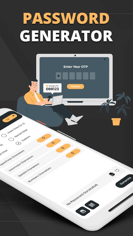 My Password Generator app you can secure online accounts by creating a unique password from the given options to choose which characters your password should contain or you can choose your set of a custom symbols.