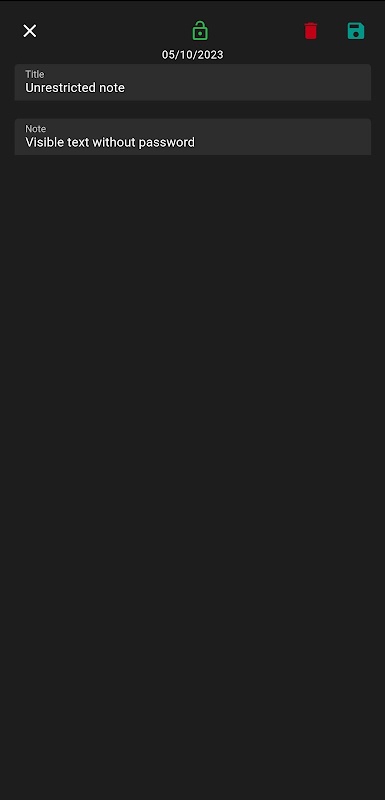 Ghi chú có thể được thiết lập để xem miễn phí hoặc được bảo vệ bằng mật khẩu. Để xem các ghi chú được bảo vệ, bạn cần nhập mật khẩu mà bạn có thể đặt trong phần "Tùy chọn" hoặc, nếu có, hãy sử dụng dấu vân tay của bạn.