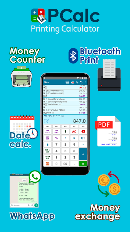"PCalc" là một máy tính in ấn, chuyên dùng để bán hàng, tại nhà hoặc nơi làm việc.