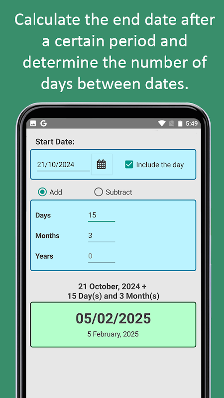 ✅ Máy tính ngày; cho phép bạn tính toán số ngày trôi qua giữa các ngày khác nhau hoặc sau một thời gian nhất định đã trôi qua.