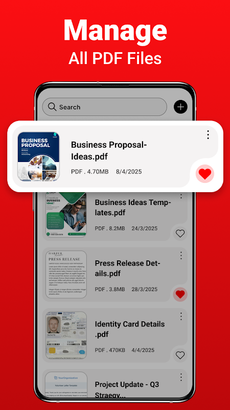• Đổi tên, xóa, in hoặc sắp xếp tệp PDF dễ dàng.