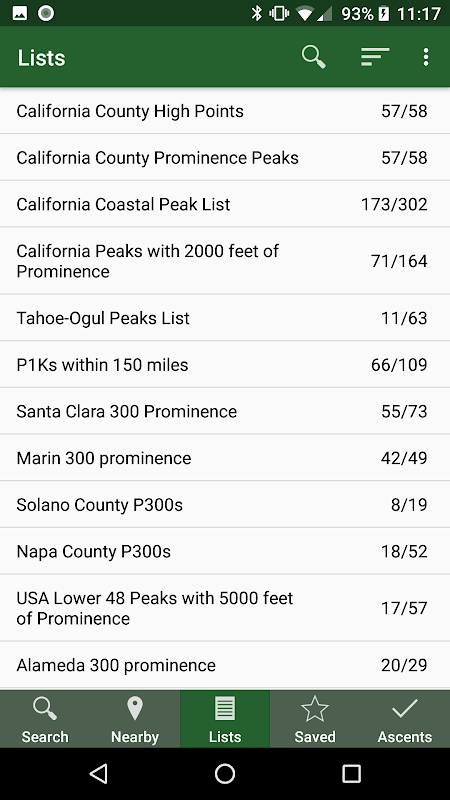Tìm núi để leo lên và theo dõi sự tiến bộ của bạn chống lại hàng trăm danh sách cao điểm.