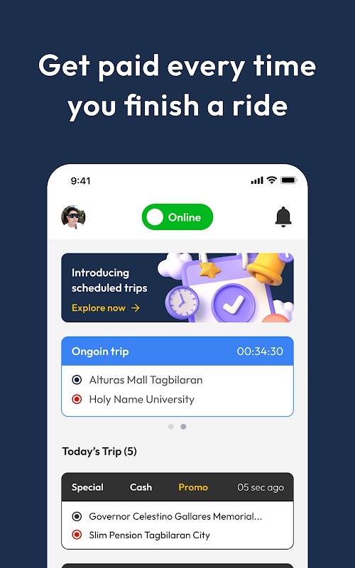 Hãy là ông chủ lái xe. Đặt giờ của riêng bạn và chấp nhận chuyến đi vào thời điểm tốt nhất của bạn.