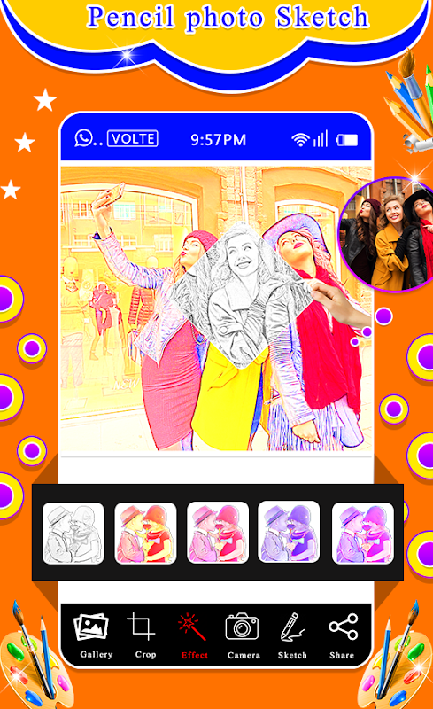 -Sketching Photo Editor: bút chì màu, nghệ thuật hoạt hình, phác thảo bút chì, hình bóng, bản vẽ và nhiều hiệu ứng bút chì cho hình ảnh của bạn.