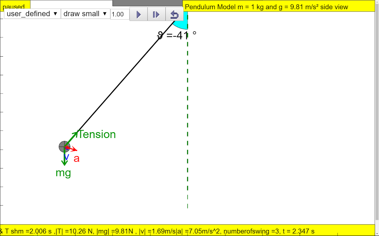Nó chỉ ra rằng một con lắc là chỉ thích hợp một dao động điều hòa đơn giản với sự dịch chuyển góc nhỏ. Làm thế nào nhỏ? chơi với các ứng dụng và nó hóa ra là khoảng dưới 10 độ từ dây dọi thẳng đứng.