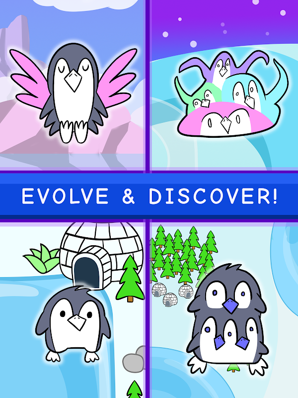 Your penguins will generate coins while you are away, that you can use to evolve even more penguins! You can even feed them candy!