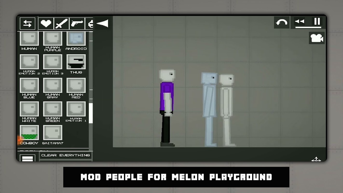 People Mod Melon PlayGround là ứng dụng dành cho bạn có chứa nhiều bộ sưu tập mod dành cho Melon Playground. Bạn có thể làm bất cứ điều gì bạn muốn và sử dụng khả năng sáng tạo của mình ở mức tối đa với nhiều Chế độ người khác nhau của chúng tôi.