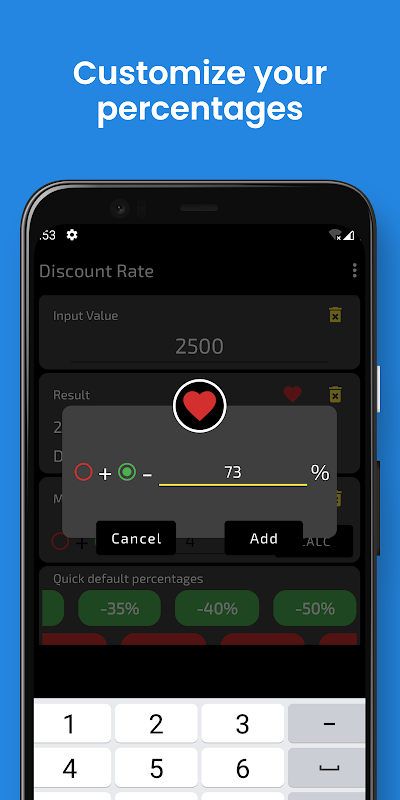 Với Tỷ lệ chiết khấu, bạn có thể nhanh chóng tính toán tỷ lệ phần trăm bạn muốn. Tăng hoặc giảm giá.