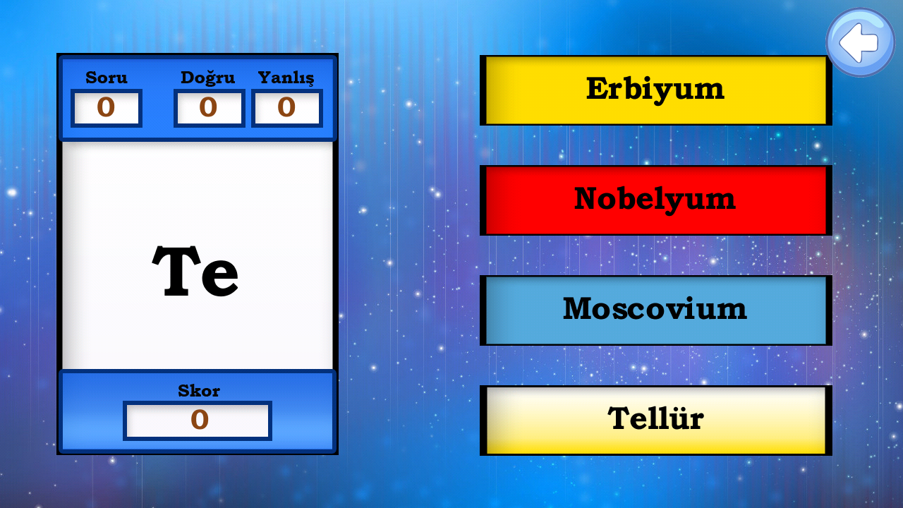 Bốn trò chơi với bốn cấu trúc thử nghiệm khác nhau được thiết kế để tạo thuận lợi cho việc học các yếu tố hóa học. Người dùng có thể tự kiểm tra ở đây và theo dõi điểm thành công và trình độ học tập trong các yếu tố.