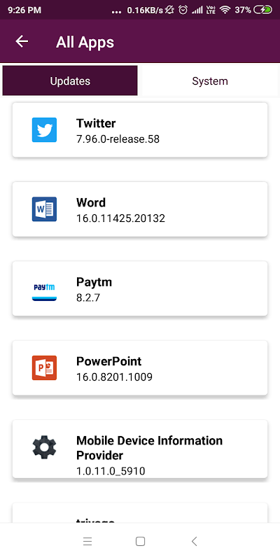 Ứng dụng thông tin và cập nhật ứng dụng Android có thể được sử dụng để biết danh sách các ứng dụng có cập nhật trong cửa hàng play. Ngoài ra, ứng dụng cập nhật ứng dụng Android cho phép dễ dàng gỡ cài đặt và truy cập cửa hàng google play mà không gặp rắc rối nào. Ứng dụng cũng cung cấp một mô tả ngắn về ứng dụng và các chi tiết liên quan đến ứng dụng android có liên quan. Phần thông tin của ứng dụng này không có gì nhưng giống như trong Cài đặt ẩn của Android. Trong các bản cập nhật trong tương lai, ứng dụng sẽ được cập nhật thêm nhiều cập nhật liên quan đến điện thoại Android Thông tin và các tính năng mới khác.