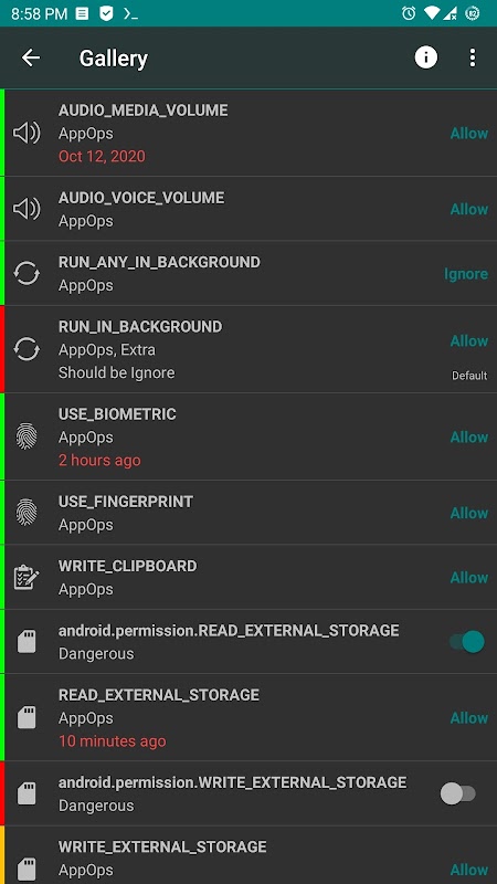 Quyền manifest là những quyền thường được gọi là quyền, ví dụ: Lưu trữ, Camera, v.v. AppOps (hoạt động ứng dụng) là một khuôn khổ mạnh mẽ mà Android sử dụng ở phía sau để kiểm soát truy cập. Chúng cung cấp khả năng kiểm soát chi tiết đối với nhiều quyền manifest. Ngoài ra, nó còn cung cấp các điều khiển bổ sung như thực thi nền, rung, truy cập clipboard, v.v.