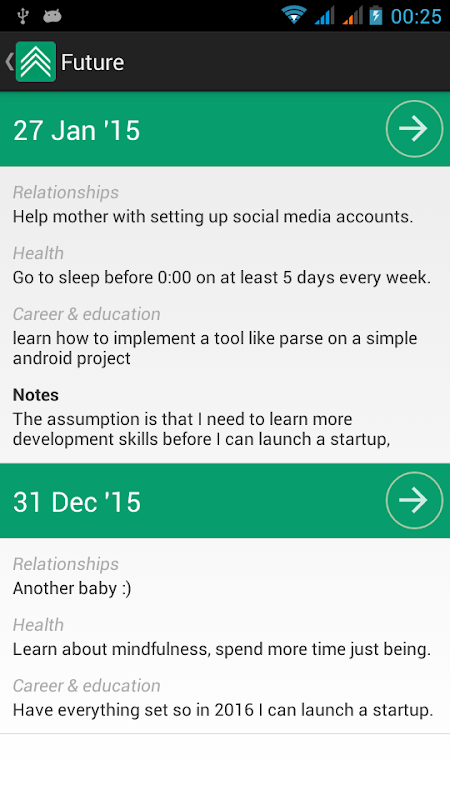 This app is a quick and simple tool to help you set goals, measure progress and self reflect.
