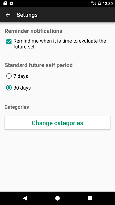 ✔ Add / edit / remove categories. It starts with: Relationships, Health, Career & education, Other