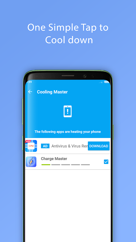 Tự động phát hiện các ứng dụng quá nóng với thuật toán đặc biệt, theo dõi và quét xem các ứng dụng nào gây tốn tài nguyên và gây nóng máy và giúp don rac tang toc va lam mat cpu, giảm nhiệt độ điện thoại.