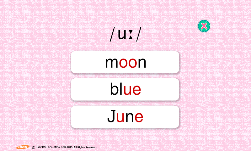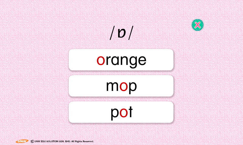 Có ba phần trong ứng dụng này: nguyên âm, nhị âm và phụ âm.