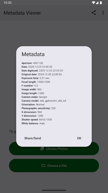 Xem siêu dữ liệu Exif được ghi lại của ảnh (máy ảnh / kiểu điện thoại, vị trí, v.v.).
