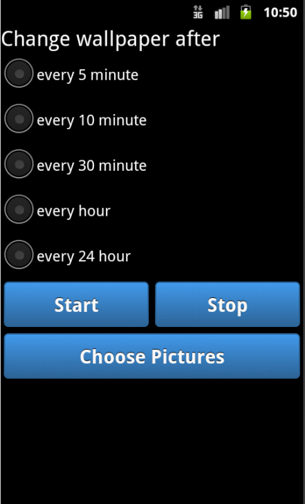 Customize you phone by selecting from the pictures that you have on you phone. Pic2wall would display your pictures and change your wall screen based on the time interval and the pictures that you have chosen