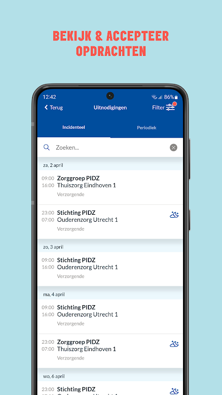 Bạn sẽ tìm thấy nhiều công việc tự làm nhất và tốt nhất tại các cơ sở chăm sóc sức khỏe trên khắp Hà Lan trong ứng dụng PIDZ!