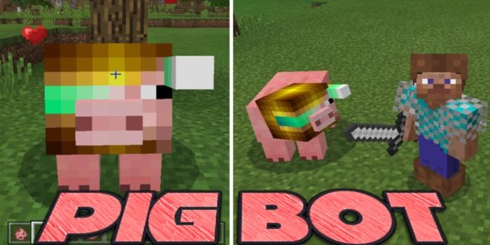 Pig bots are slightly larger than a normal pig (which it replaces) and also much faster. It’s a neutral mob which means it will protect itself if it’s being attacked.