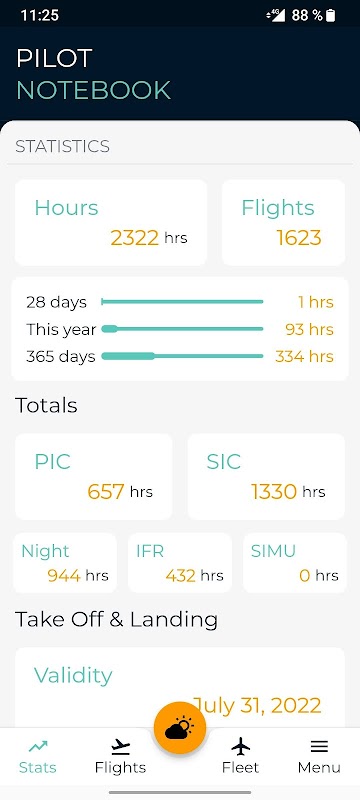 ✔ Tổng số được tính toán tự động - giờ PIC, SIC, Đêm, IFR và mô phỏng.