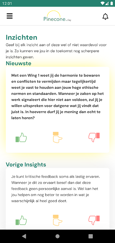 Ứng dụng Pinecone hiển thị thông tin chi tiết cho người dùng dựa trên các đánh giá đã hoàn thành, cho phép họ hiểu rõ hơn về bản thân. Những điều họ giỏi hoặc gặp khó khăn. Động cơ của họ để làm hoặc không làm những việc nhất định, v.v.