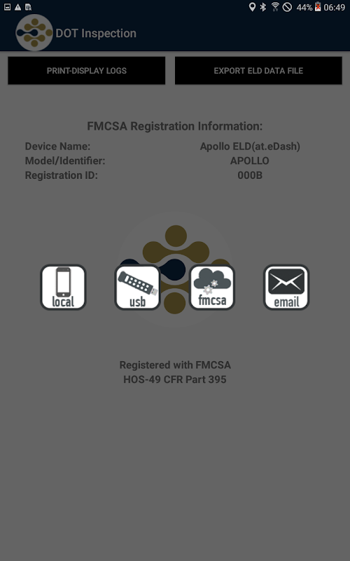 Ứng dụng tuân thủ FMCSA để ghi lại trạng thái nhiệm vụ của người lái xe và đáp ứng các quy định sau: