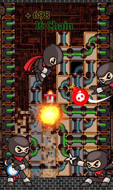 Simply turn and move the different pipe pieces by touching them and connect them together to form a pipeline. Make as many pipelines as you can before the pipes reach the top. Level up, and use your abilities you learn to get the best score you can!