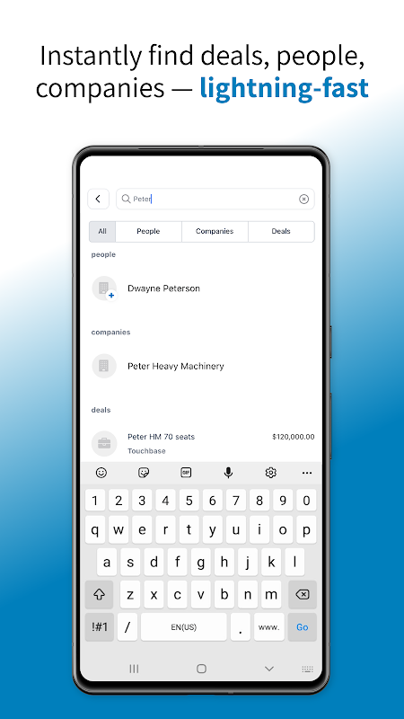 - Tìm kiếm toàn diện: Nhanh chóng tìm kiếm Người, Giao dịch và Công ty với chức năng tìm kiếm toàn diện mạnh mẽ, giúp bạn tiết kiệm thời gian.