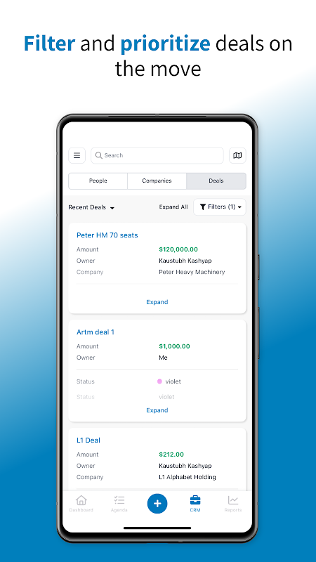 Pipeline CRM cách mạng hóa hoạt động của đội ngũ bán hàng, kết hợp các công cụ mạnh mẽ và dữ liệu thời gian thực để giúp bạn chốt nhiều giao dịch hơn với ít nỗ lực hơn. Pipeline CRM đảm bảo bạn luôn kết nối với các hoạt động bán hàng, cho phép bạn quản lý quy trình bán hàng hiệu quả từ mọi nơi. Các tính năng dễ sử dụng, tập trung vào bán hàng mang đến cho bạn cái nhìn sâu sắc ngay lập tức về kênh bán hàng và mối quan hệ với khách hàng với dữ liệu cập nhật theo thời gian thực.